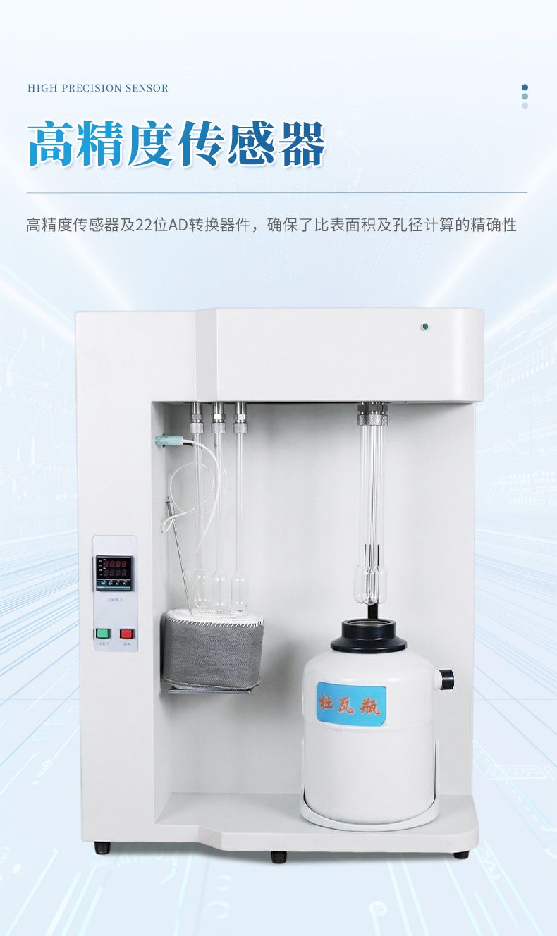 多個高精度的傳感器及22位的AD轉(zhuǎn)換器件,確保了比表面積及孔徑計算的精確性。
