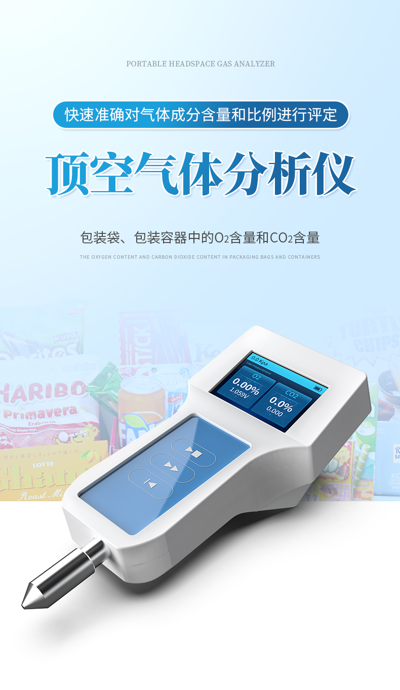 3.內置氣體傳感器,可精確分析軟、硬質包裝內部氣體含量;