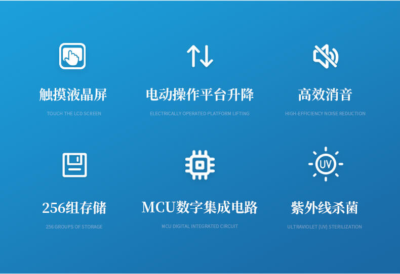 6. 設備配置電動操作平臺升降、 LED 照明系統、紫外殺菌功能;