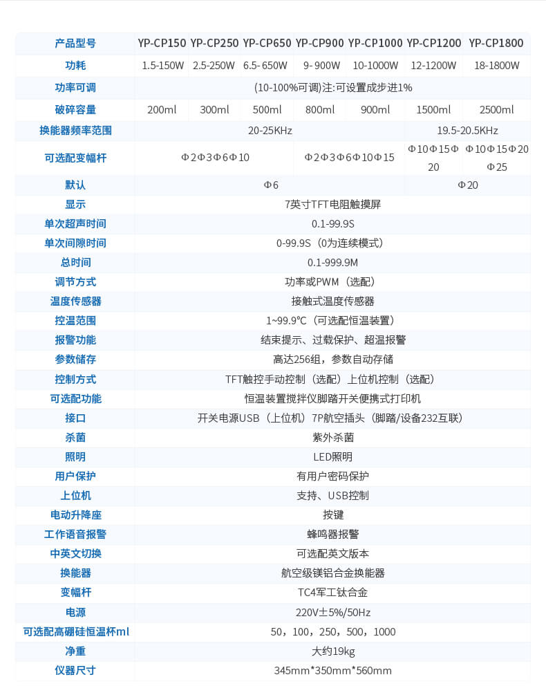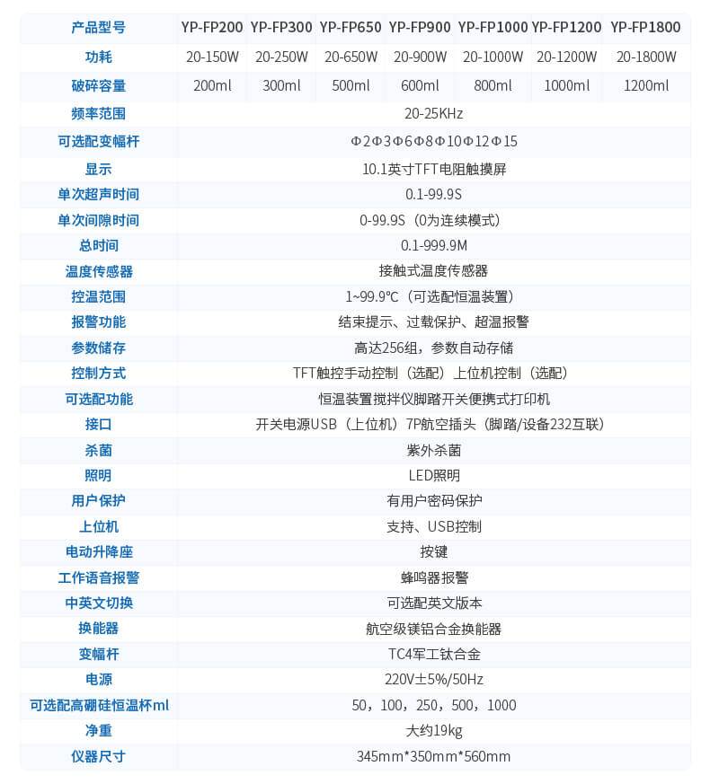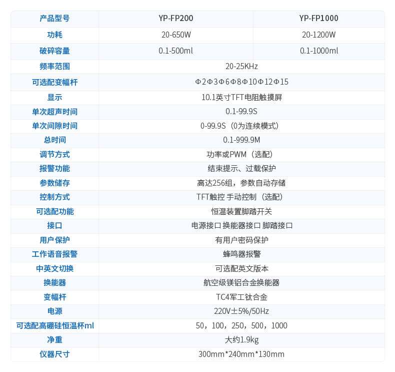 | 破碎容量 | 0.1--200ml(需選配相應的變幅桿) |