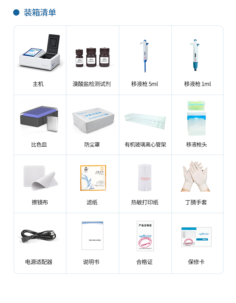 水質溴酸鹽快速檢測儀是一款檢測快速檢測水體中溴酸鹽含量的儀器,適用于經臭氧消毒后的礦泉水、凈化水、純凈水和各種包裝飲用水中溴酸鹽的定量檢測。