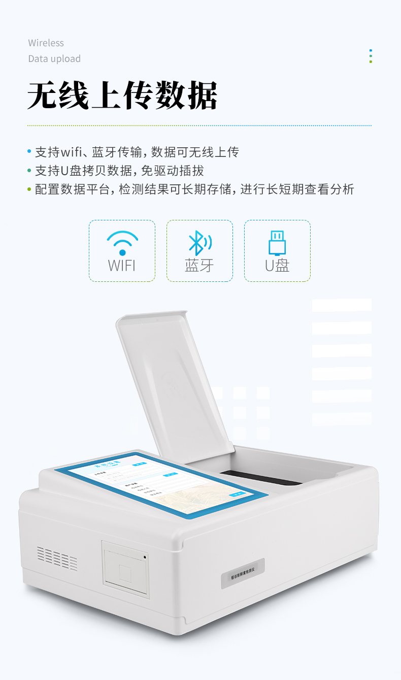 *3、支持wifi、藍牙傳輸,數據可無線上傳;支持U盤拷貝數據,免驅動插拔。