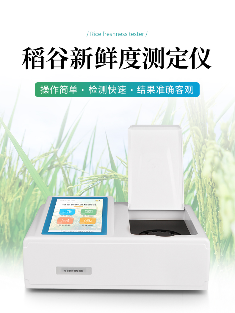 稻谷新鮮度測定儀適用于LS/T 6118—2017《糧油檢驗 稻谷新鮮度測定與判別》糧食行業標準,是檢測稻谷新鮮程度的一款專用儀器。其工作原理是依據稻谷樣品在陳化過程中產生的醛酮類物質的量,將待測稻谷碾制成大米,大米試樣加入專用試劑——測鮮劑后,振蕩混合并進行離心處理,通過檢測樣品與測鮮劑混合反應后混合溶液的顏色變化,經儀器檢測后顯示樣品的新鮮度值來判斷該稻谷樣品的新鮮程度。該儀器主要應用于糧庫、大米加工企業、糧食質檢中心等對稻谷新鮮程度的評價。