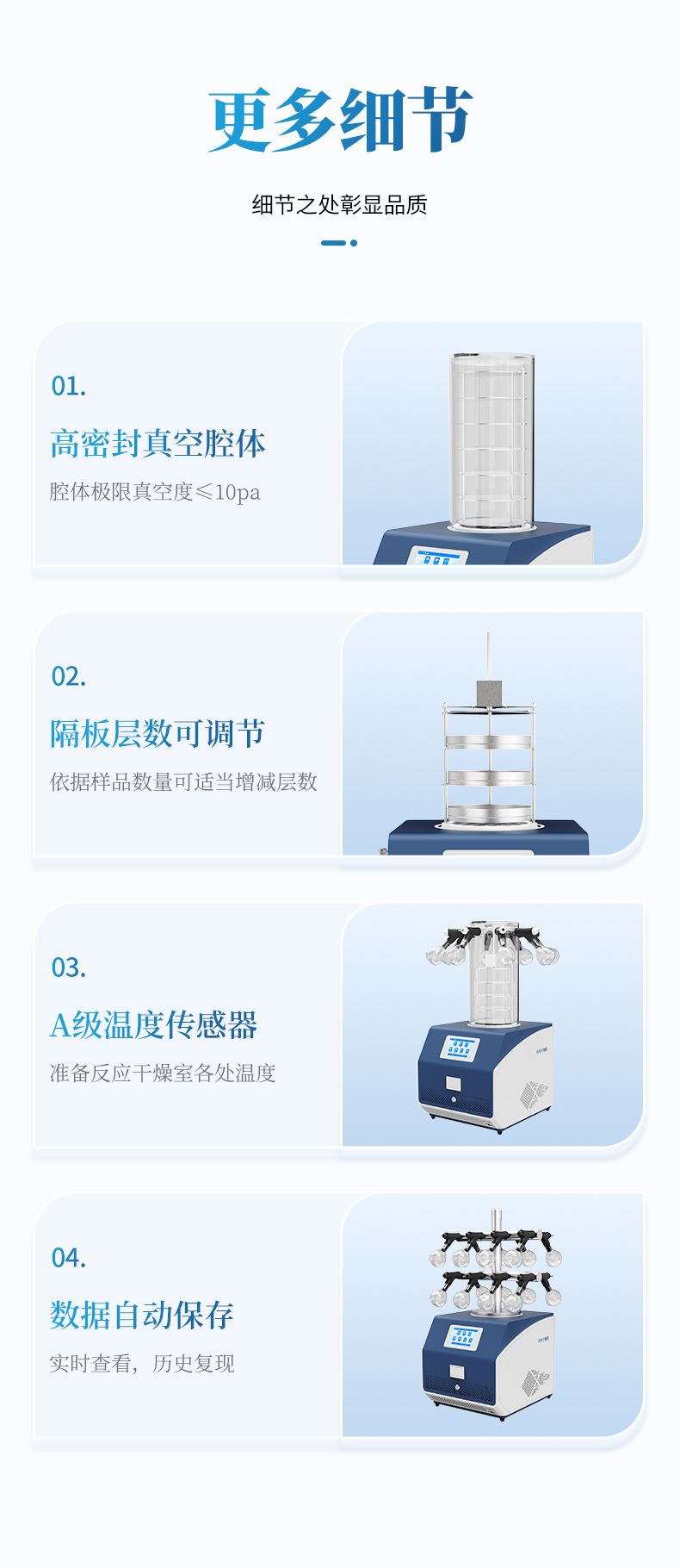 (6) 多重樣品保護機制,如冷阱溫度過高時,禁止真空泵啟動,避免樣品沸騰而被破壞。