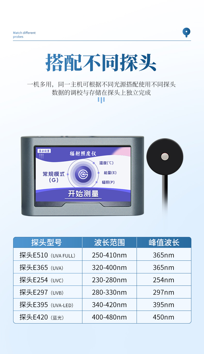 | 探頭E420(藍光) | 400-480nm | 450nm |