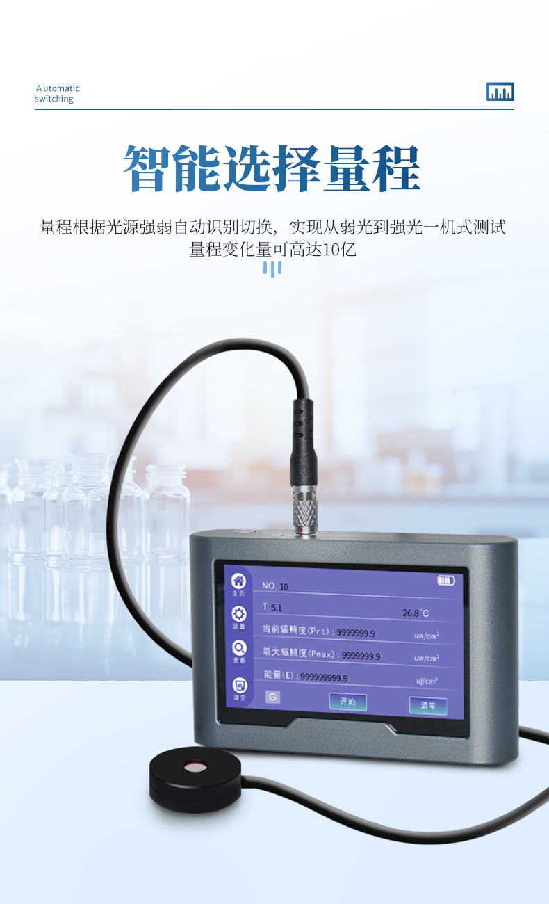 4.智能選擇量程,儀器可根據(jù)光源強弱自主切換量程;