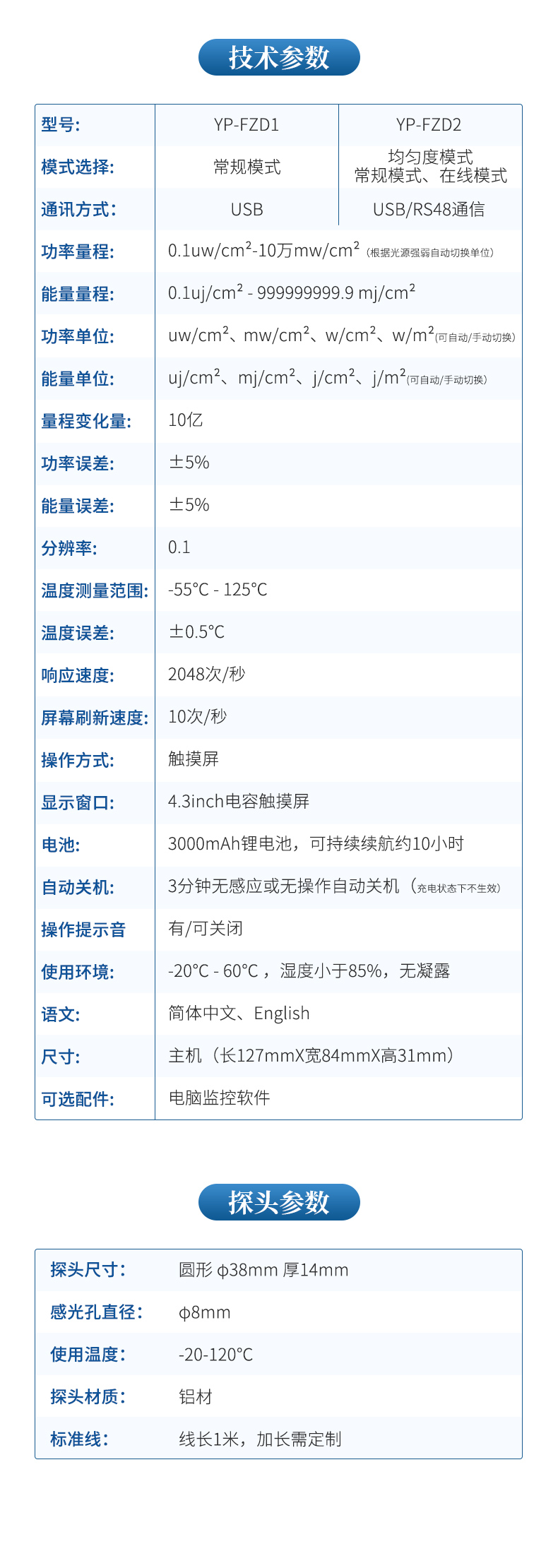 | 功率量程: | 0.1uw/cm2-10萬mw/cm2(根據(jù)光源強弱自動切換單位) |