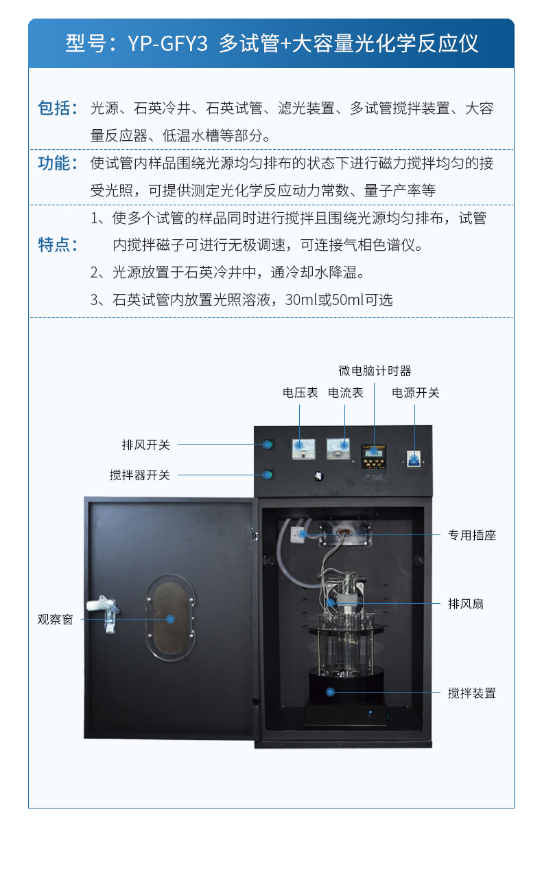 1.光化學反應儀智能微電腦控制,可觀察電流和電壓實時變化