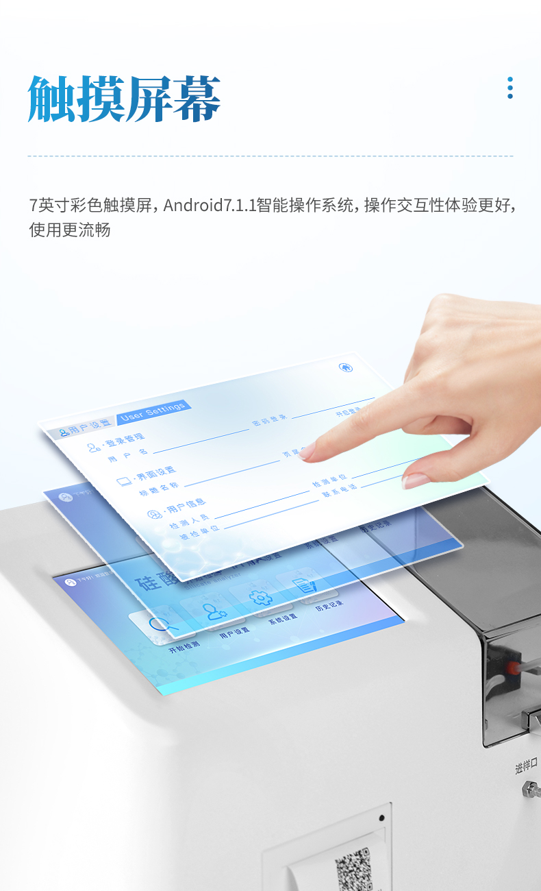 實驗室硅酸根分析儀適用于檢測樣水中常量硅酸根離子的含量。廣泛應用于發電廠、化工化肥、冶金、環保、制藥、化纖、半導體等行業,適用于除鹽水、蒸汽冷凝水、爐水等水中可溶性硅酸根含量的檢測分析;參考《GB/T12149-2017工業循環冷卻水和鍋爐用水中硅的測定》標準設計制造。