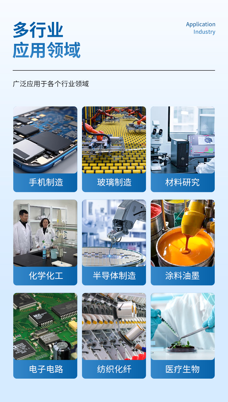 可廣泛應(yīng)用于材料研究、工業(yè)涂層、手機(jī)制造、生物醫(yī)藥、電子電路、紡織纖維、石油開(kāi)采、航空航天等領(lǐng)域。
