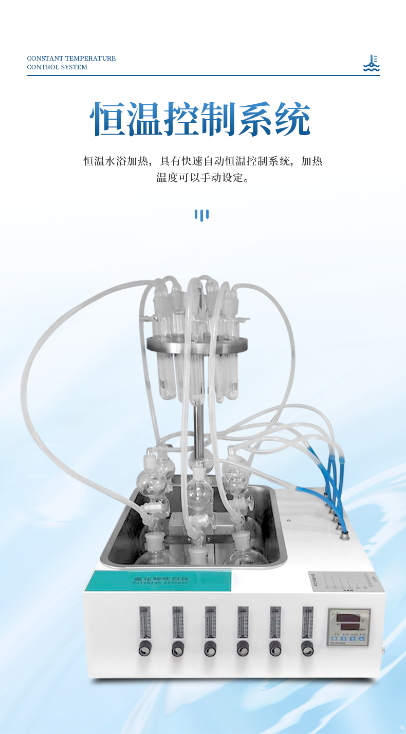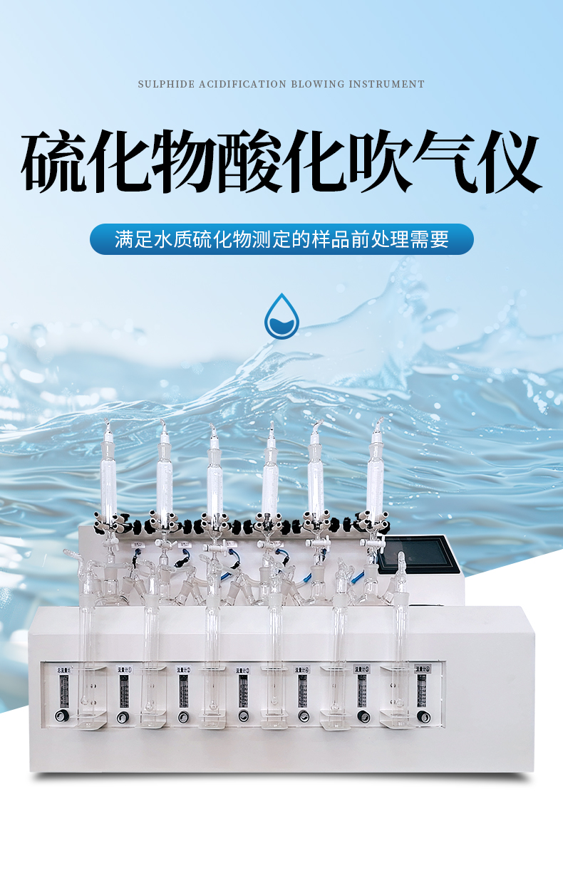 水質(zhì)硫化物酸化吹氣儀根據(jù)水質(zhì)硫化物的測定-亞甲基藍(lán)分光光度法(碘量法)標(biāo)準(zhǔn)開發(fā)生產(chǎn)的。滿足水質(zhì)硫化物測定的樣品前處理需要。