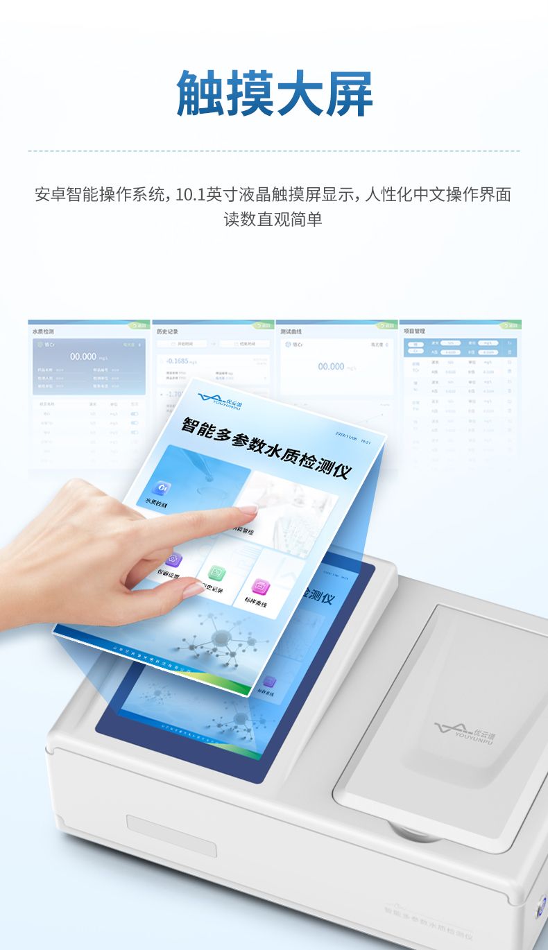 本儀器主要檢測水中硫酸鹽含量指標,兼具智能數據分析功能,圖表、列表顯示數據,分析一目了然;高清晰度彩色液晶觸摸顯示屏,Android智能操作系統,中文顯示界面,中英文鍵盤,人性化操作,使用更簡單。