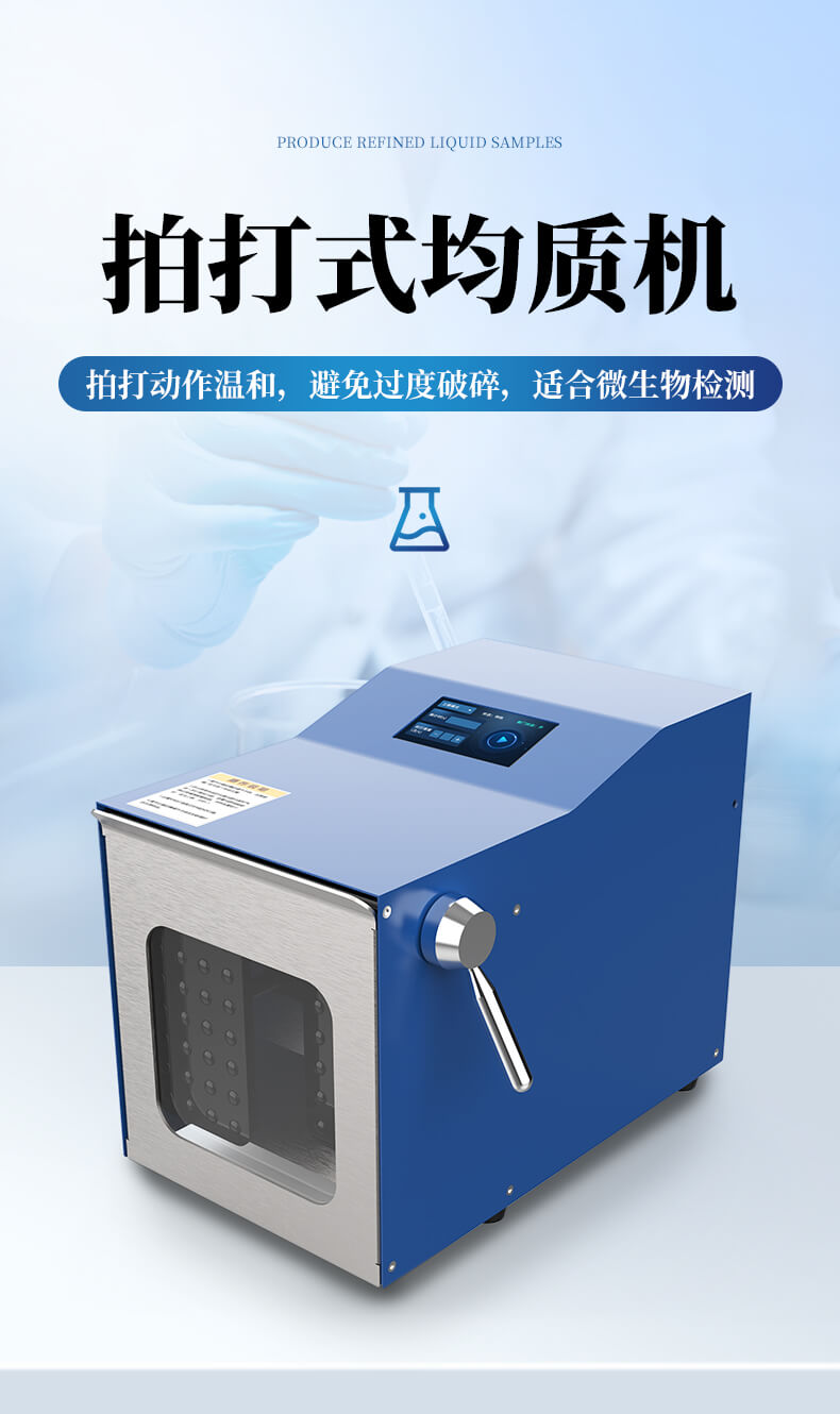 拍打式均質器(Stomacher Blender)是一種常用于實驗室樣品前處理的設備,主要用于生物、食品、藥品等樣品的均質化和微生物檢測前的制備。