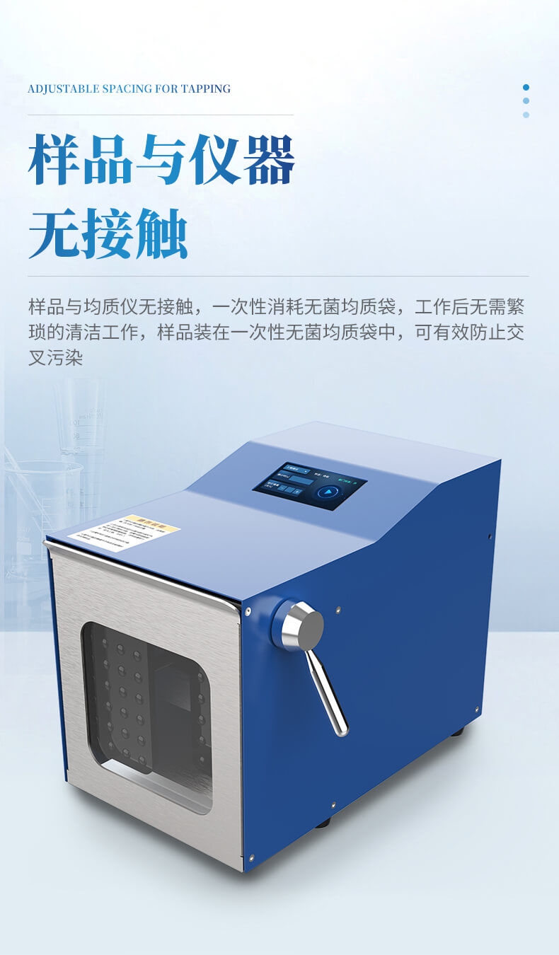 1. 拍打動作溫和,避免過度破碎,適合微生物檢測。