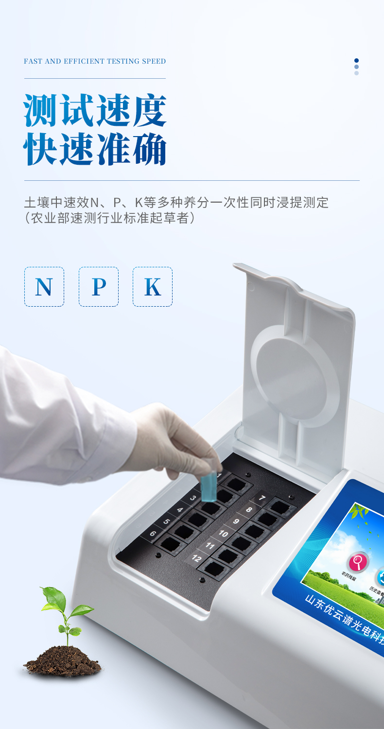 測試一個肥料樣(N、P、K)≤50分鐘,同時檢測三個肥料樣品(N、P、K)≤1.5小時。
