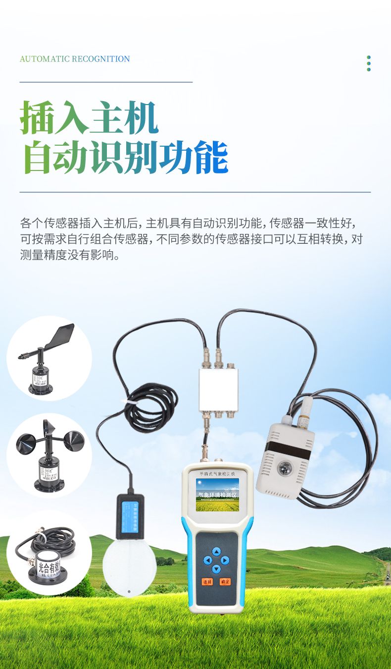 各個傳感器插入主機后,主機具有自動識別功能,傳感器一致性好,可按需求自行組合傳感器,不同參數(shù)的傳感器接口可以互相轉(zhuǎn)換,對測量精度沒有影響。