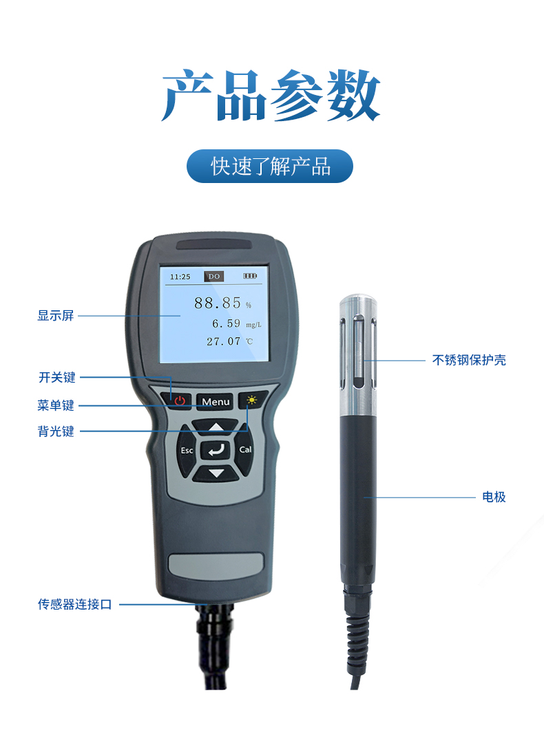 2. 內置氣壓傳感器,可對溶解氧自動補償