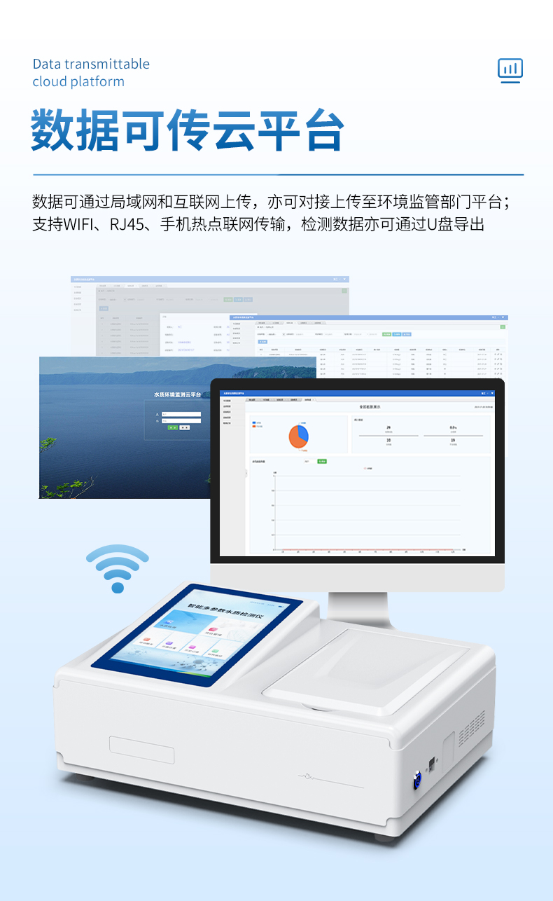 10、儀器帶有監(jiān)管云平臺,數(shù)據(jù)可通過局域網(wǎng)和互聯(lián)網(wǎng)上傳,亦可對接上傳至環(huán)境監(jiān)管部門平臺。