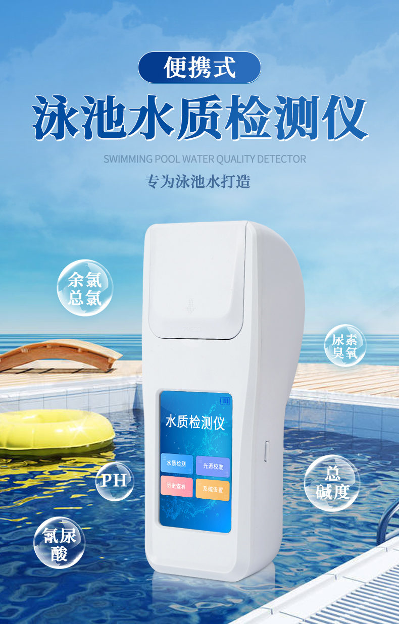 泳池水質(zhì)檢測(cè)儀是一款適用于游泳場(chǎng)館、戶(hù)內(nèi)外游泳池、水上樂(lè)園、溫泉浴池等領(lǐng)域的檢測(cè)儀,配合快速顯色檢測(cè)試劑,可“快速、簡(jiǎn)單、準(zhǔn)確、穩(wěn)定”進(jìn)行測(cè)量,擁有精美的外觀造型,簡(jiǎn)單的操作界面,準(zhǔn)確的檢測(cè)系統(tǒng),幫助用戶(hù)獲得精細(xì)的數(shù)據(jù),可更準(zhǔn)確、有效的分析水體狀況。