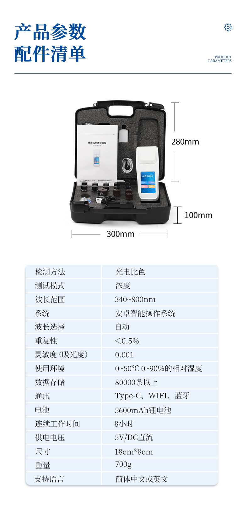 ⑥便攜式體積小,重量輕,方便戶(hù)外檢測(cè);