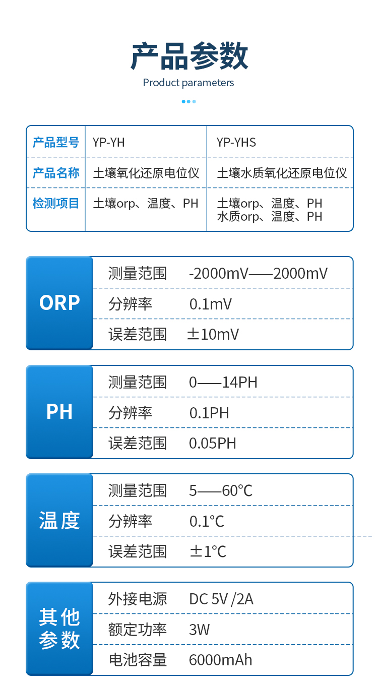 ●配套專用ORP電極、參比電極和不銹鋼空心杄,可直接插入土壤