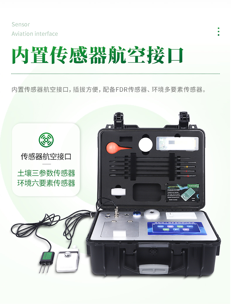 配套齊全:該儀器集藥、器、儀為一體,攜帶方便,相當(dāng)于一個(gè)小型移動(dòng)實(shí)驗(yàn)室,無需用戶自配附件,亦可靈活野外流動(dòng)測(cè)試。適于農(nóng)業(yè)服務(wù)部門或農(nóng)資經(jīng)銷商、高教院校、科研院所、合作社、肥料廠商、大種植戶測(cè)土施肥和鑒別肥料真假及環(huán)保檢測(cè)應(yīng)用。