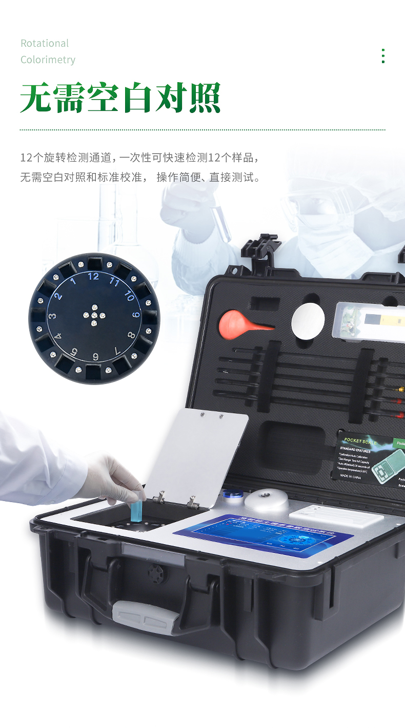 速度快捷:無需空白對(duì)照和標(biāo)準(zhǔn)校準(zhǔn),操作簡(jiǎn)便、直接測(cè)試,配套成品藥劑開瓶即用,無須配置。