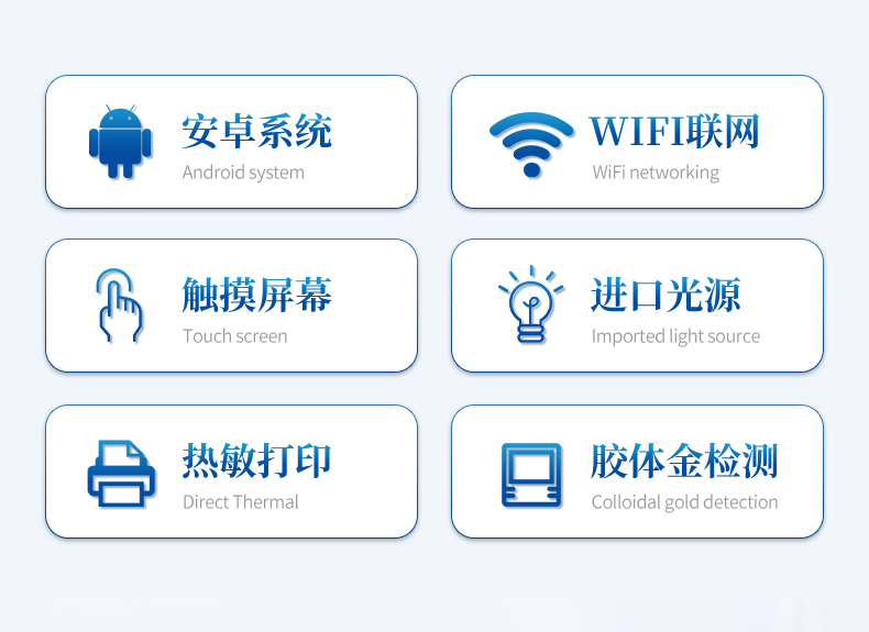 17、兼容市場(chǎng)上所有的膠體金卡,使用耗材不受限制,極大增強(qiáng)用戶(hù)使用體驗(yàn)。