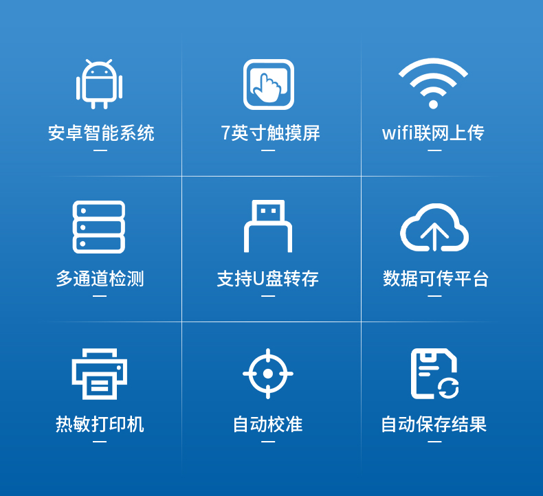 ●安卓操作系統,采用更加高效和人性化操作,儀器具有網線連接、wifi聯網上傳、GPRS無線遠傳功能,快速上傳數據。