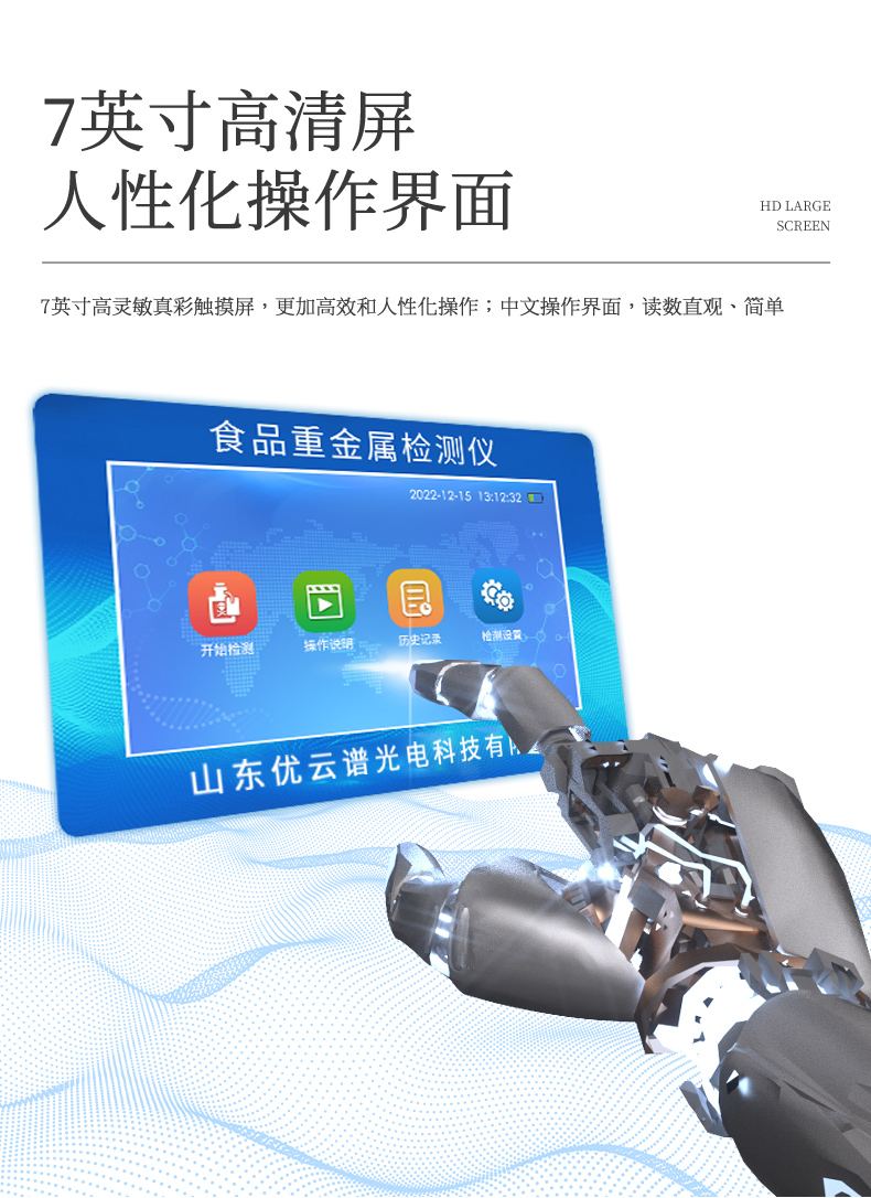4、一體化便攜式快檢設備,滿足現場及流動檢測使用需求,能夠在同一軟件下實現所有重金屬檢測項目的檢測,并可通過同一窗口直觀顯示檢測結果。