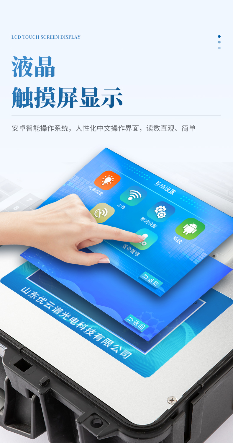 2、顯示方式:7英寸液晶觸摸屏顯示,人性化中文操作界面,讀數(shù)直觀、簡(jiǎn)單。