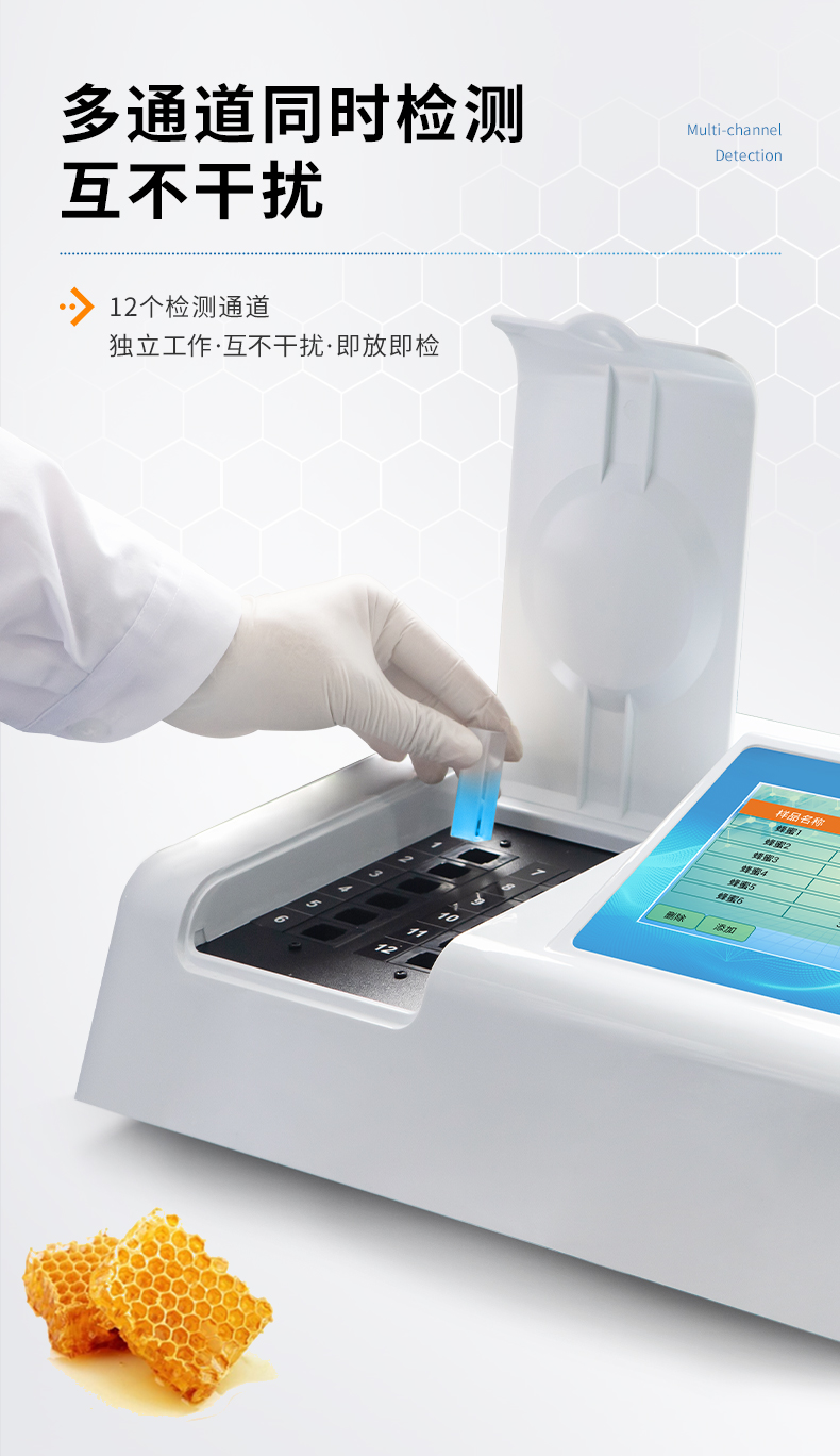 檢測項目:蜂蜜蔗糖、蜂蜜還原糖(葡萄糖和果糖)、蜂蜜羥甲基糠醛、蜂蜜酸度、蜂蜜中農藥殘留、蜂蜜淀粉酶值、蜂蜜中脯氨酸、蜂蜜水分、蜂蜜糖分、蜂蜜中灰分,應用范圍:應用于現(xiàn)場檢測蜂蜜蔗糖、葡萄糖和果糖、羥甲基糠醛、酸度、農殘、淀粉酶、脯氨酸、水分、糖分、灰分含量的蜂蜜快速檢測儀,可廣泛應用于各類蜂蜜品質的快速定量檢測。