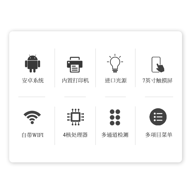 4、四波長冷光源,≥12個檢測通道,每個通道均配置410、520、590、630nm波長光源,標配先進的光路切換裝置,專利光路切換功能可實現最多64波長,并且所有檢測項目可實現所有通道同時檢測。
