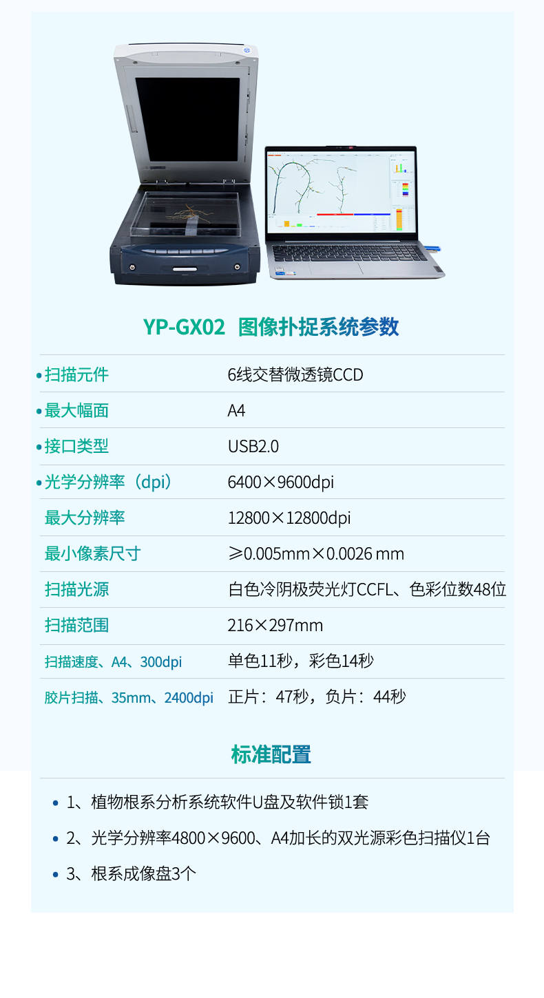 1、植物根系分析系統軟件U盤及軟件鎖1套