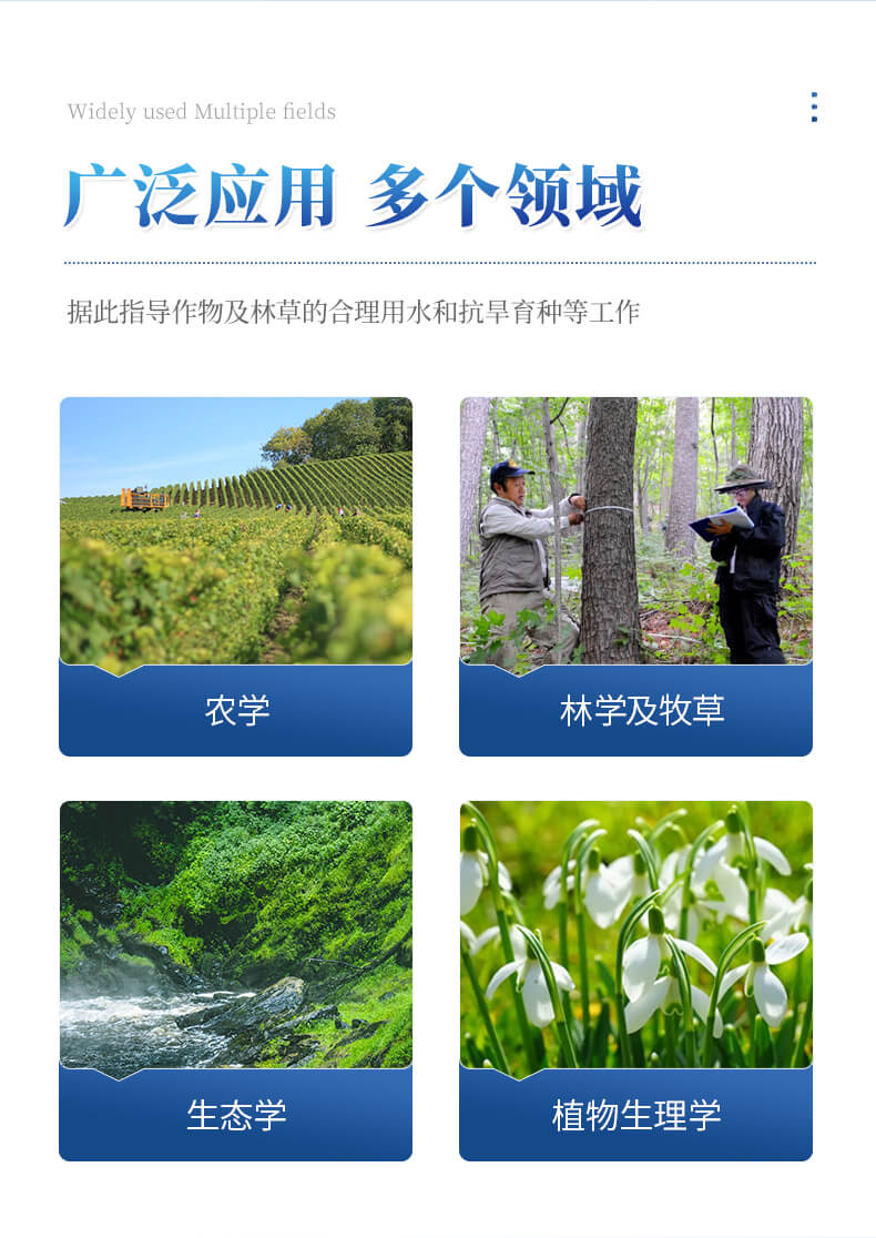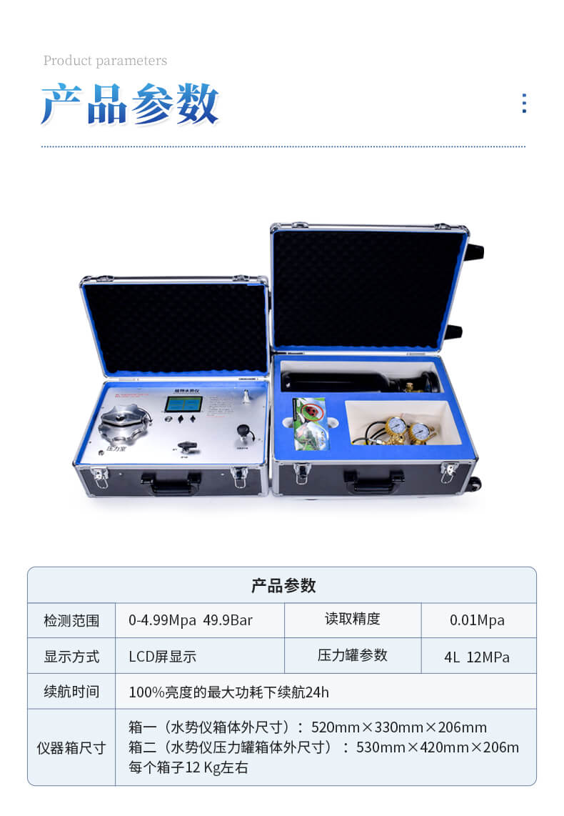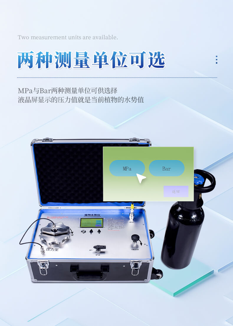 植物水勢測定儀,是用于測定植物水分狀況和它的組成成分及壓去木質部位導管汁液提供成分分析用的一種分析儀器。可以利用此儀器研究植物的水分關系和植物與環境的關系。植物水勢測定儀適用于植物生理學、生態學、農學、林學及牧草等的研究。據此指導作物及林草的合理用水和抗旱育種等工作,是從事農林教學和科研工作的重要儀器。該儀器操作簡便,檢測快速,同時適用于室內和室外及野外測量。