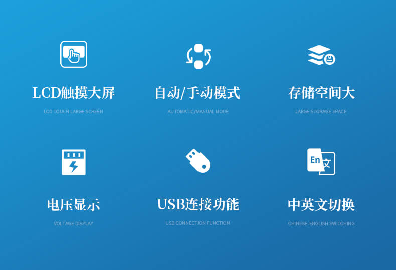 1. 配備4.3英寸彩色LCD觸摸大屏,支持中英文菜單切換。