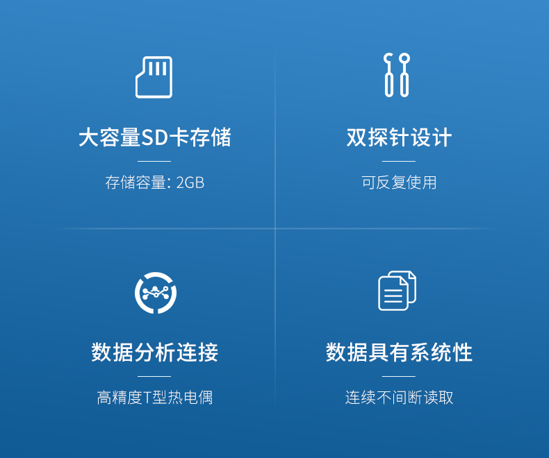 雙探針,配有相應的鉆孔工具,容易插拔,可以反復使用