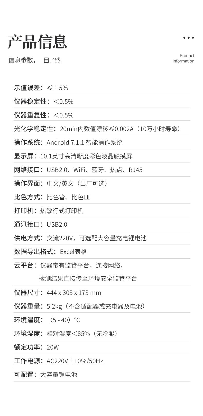 光化學穩定性:20min內數值漂移≤0.002A(10萬小時壽命);