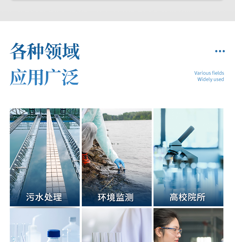 適用于生活污水、工業(yè)廢水、地下水、地表水中多種水質(zhì)污染物的檢測;運(yùn)用于水質(zhì)檢測實(shí)驗(yàn)室、市政、污水處理廠、環(huán)境監(jiān)測站及教育科研高校、電廠、疾控中心、造紙電鍍、水產(chǎn)養(yǎng)殖、生物制藥、石化、煤炭、冶金、紡織、食品等行業(yè)的水質(zhì)分析。