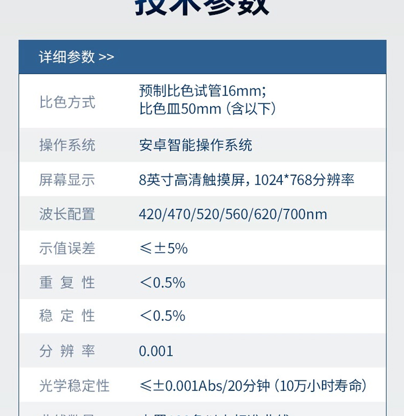 光學(xué)穩(wěn)定性:≤±0.001Abs/20分鐘(10萬小時壽命);