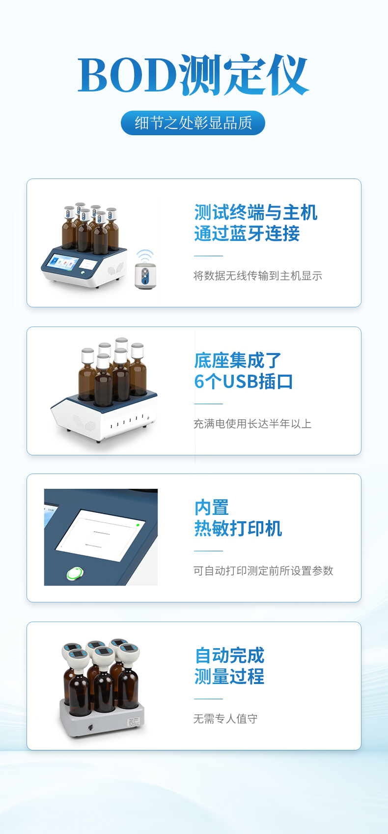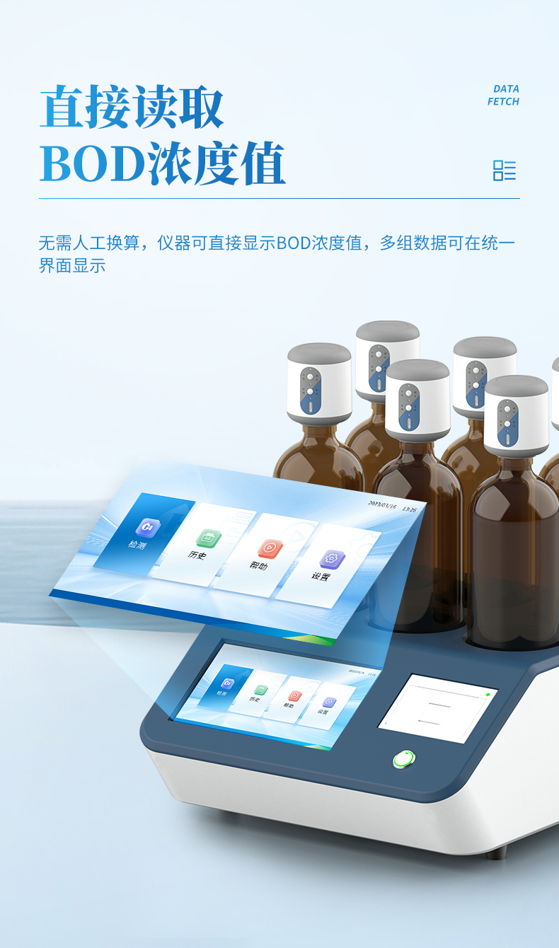 5、無需人工換算,儀器可直接顯示BOD濃度值,多組數據可在統一界面顯示;
