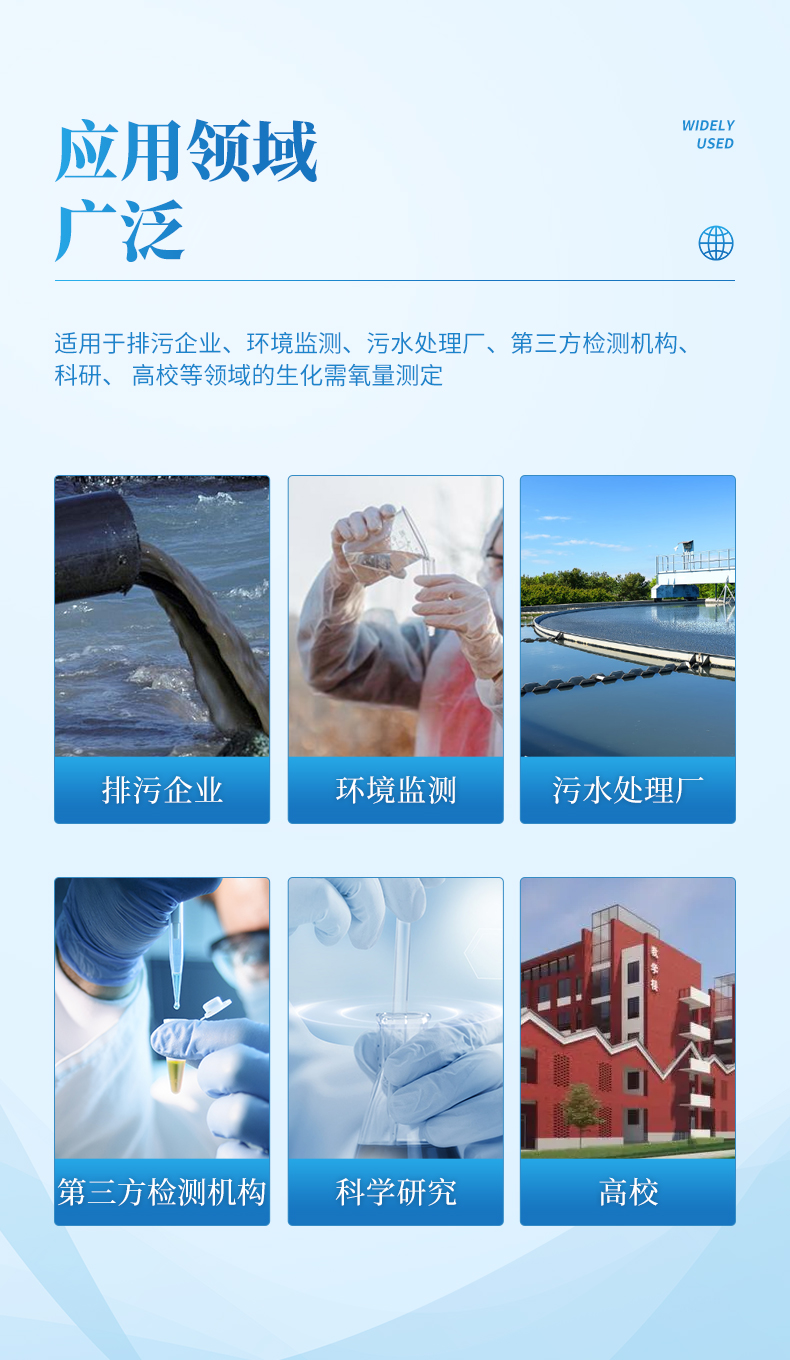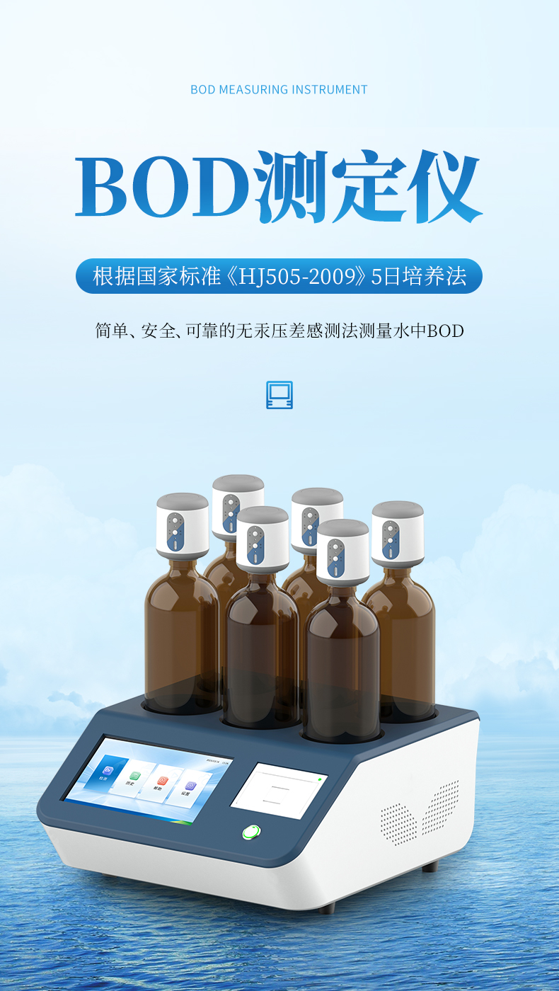 生化需氧量(BOD)測定儀是根據國家標準《HJ505-2009》5日培養法,模擬自然界中有機物的生物降解過程,采用簡單、安全、可靠的無汞壓差感測法測量水中BOD濃度;全智能化設計,領先的研發工藝和設計制造,實驗過程無需實驗人員值守;適用于排污企業、環境監測、污水處理廠、第三方檢測機構、科研、高校等領域的生化需氧量測定。