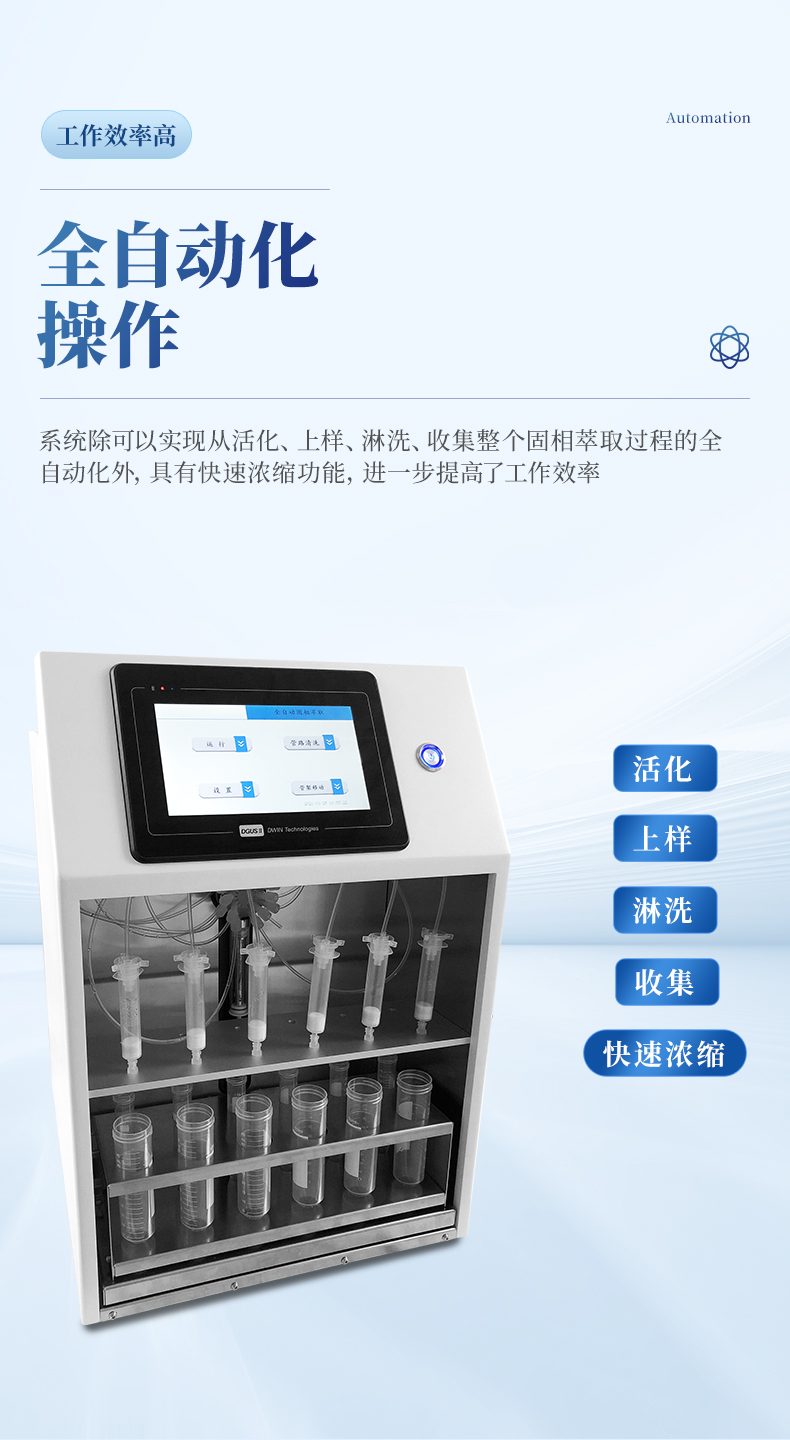 1. 系統(tǒng)除可以實(shí)現(xiàn)從活化、上樣、淋洗、收集整個固相萃取過程的全自動化外,具有快速濃縮功能,進(jìn)一步提高了工作效率。