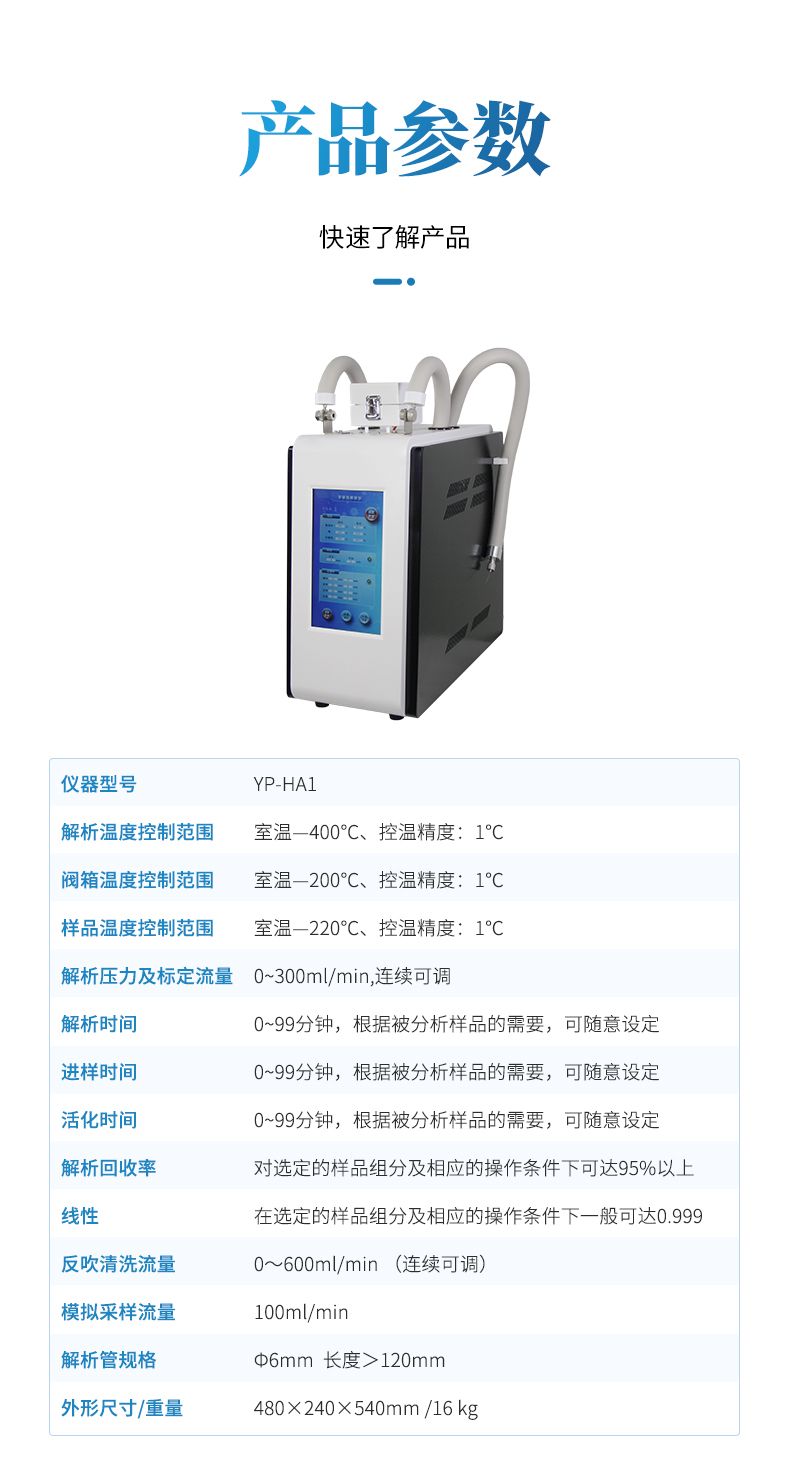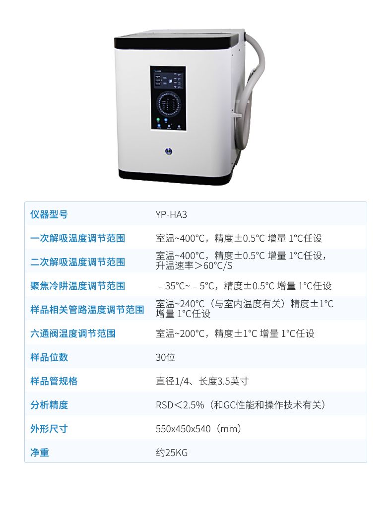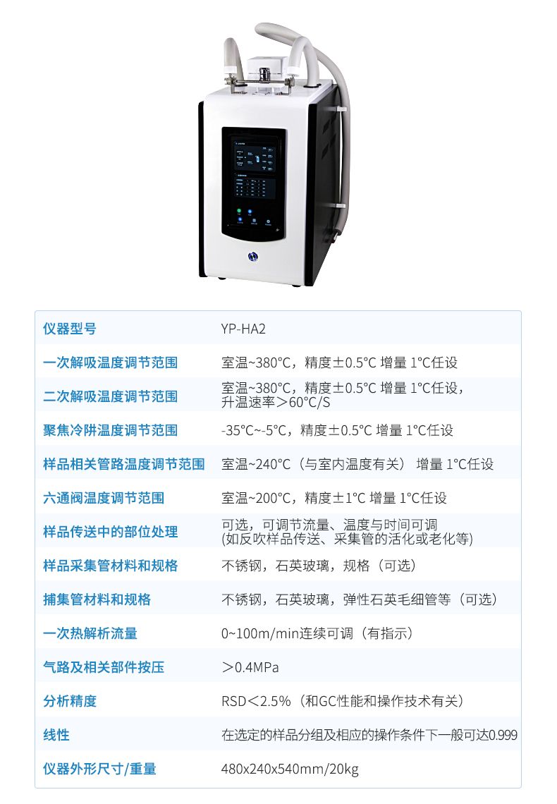 二次解吸溫度調節范圍: 室溫~380℃,精度±0.5℃ 增量 1℃任設,升溫速率>60℃/S