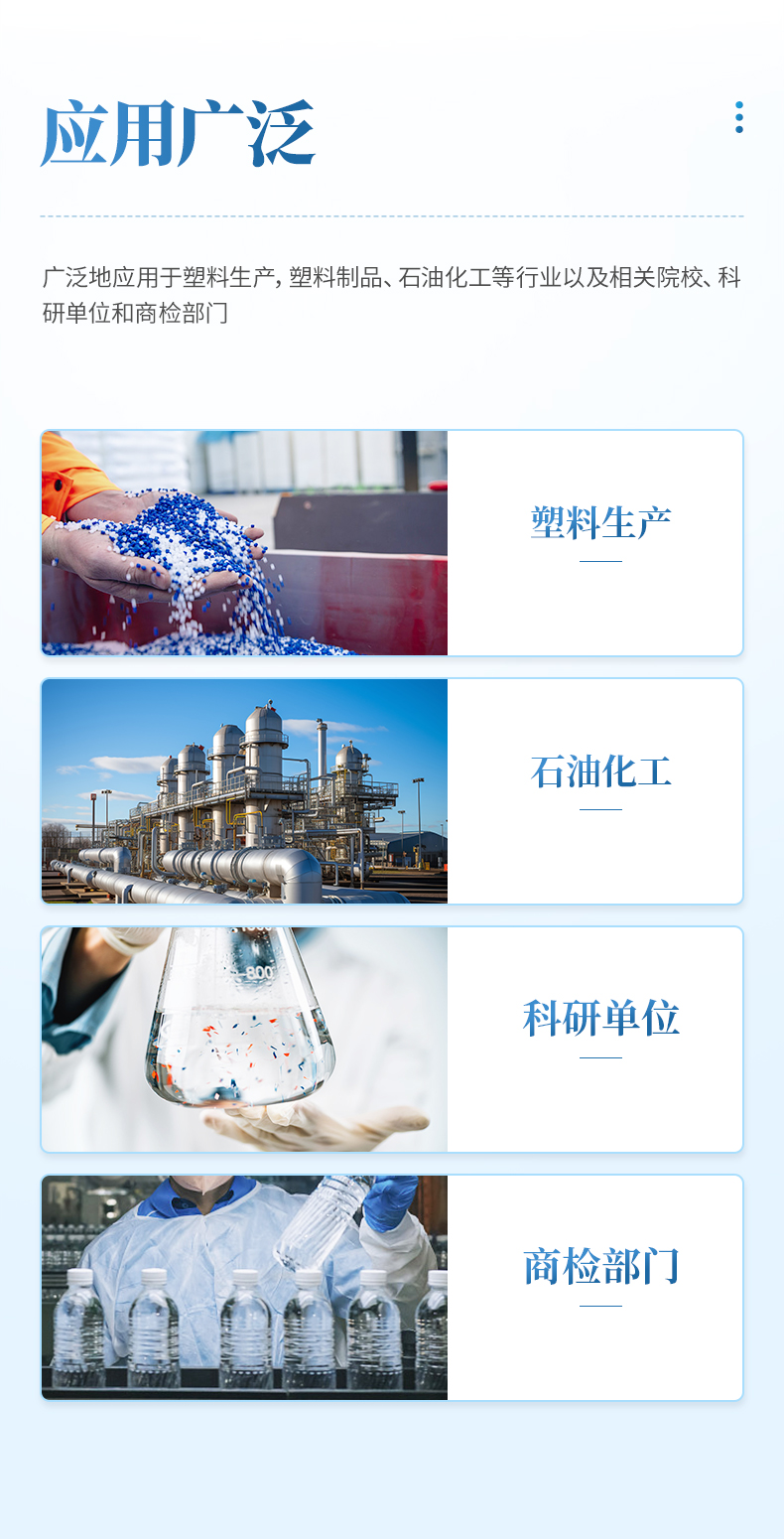 本儀器是用來測(cè)定各種高聚物在粘流狀態(tài)時(shí)熔體流動(dòng)速率,它既適用于熔融溫度較高的聚碳酸酯、聚芳砜、氟塑料、尼龍等工程塑料,也適用聚乙烯、聚苯乙烯、聚丙烯、ABS樹脂、聚甲醛樹脂等熔融溫度較低的塑料測(cè)試,廣泛地應(yīng)用于塑料生產(chǎn)、塑料制品、石油化工等行業(yè)以及有關(guān)院校、科研單位和商檢部門。