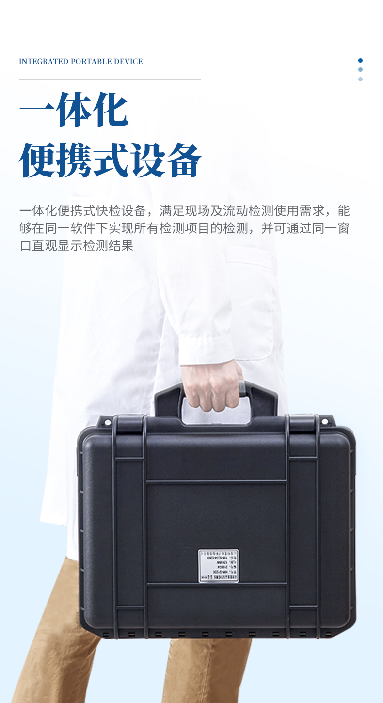 5、一體化便攜式快檢設備,滿足現場及流動檢測使用需求,能夠在同一軟件下實現所有檢測項目的檢測,并可通過同一窗口直觀顯示檢測結果。