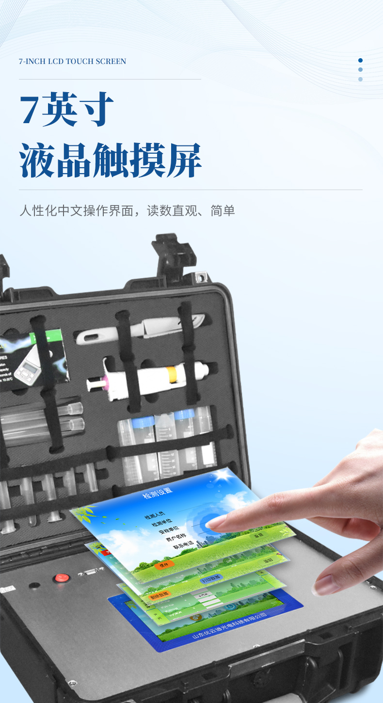 2、顯示方式:7英寸液晶觸摸屏顯示,人性化中文操作界面,讀數直觀、簡單。