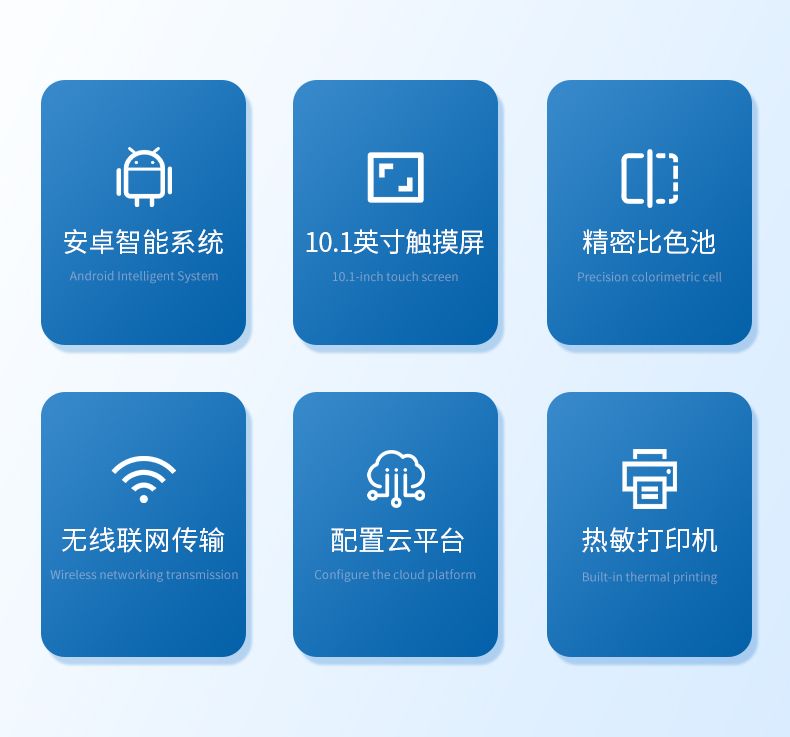 3.采用精密比色池設計,使用光源一致,可以解決由于光源誤差帶來的檢測結果誤差問題,檢測結果更加精準;