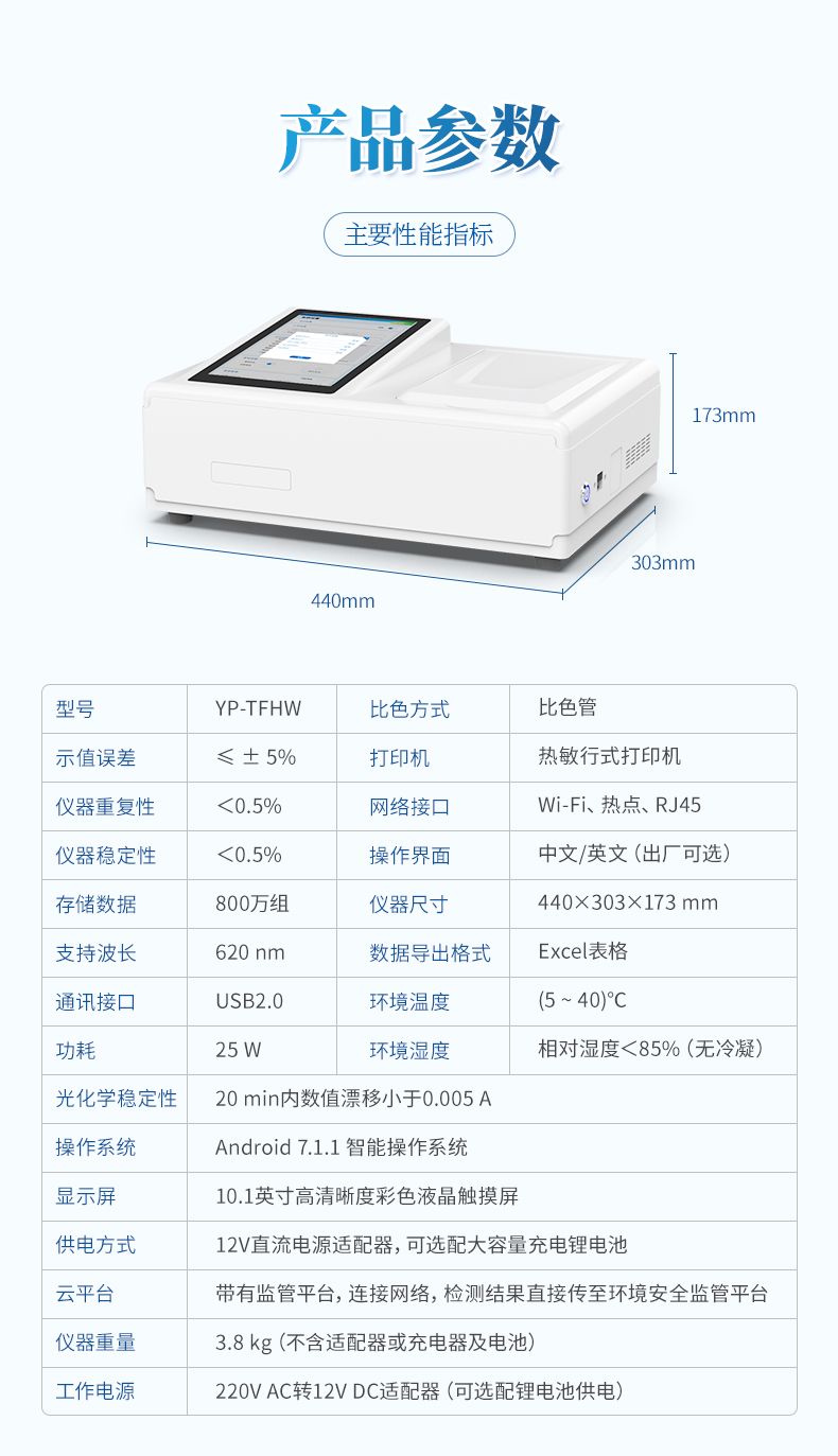 儀器將復雜的實驗室分析流程集成機身中,操作簡捷,其性能符合國家標準方法要求,適用于飲用水安全篩查、環境水體巡查、工業廢水排放監控及應急檢測等多種場景,是保障用水安全、實現高效現場管控的得力工具。