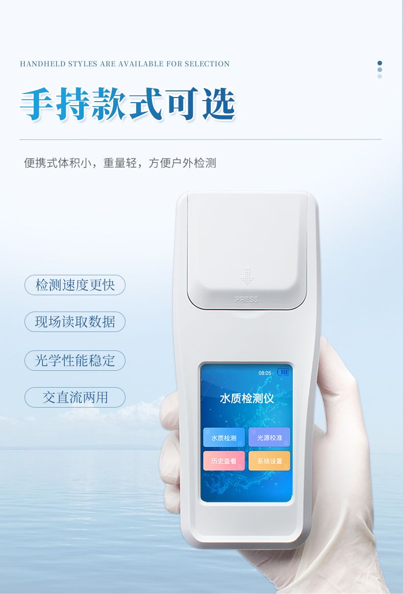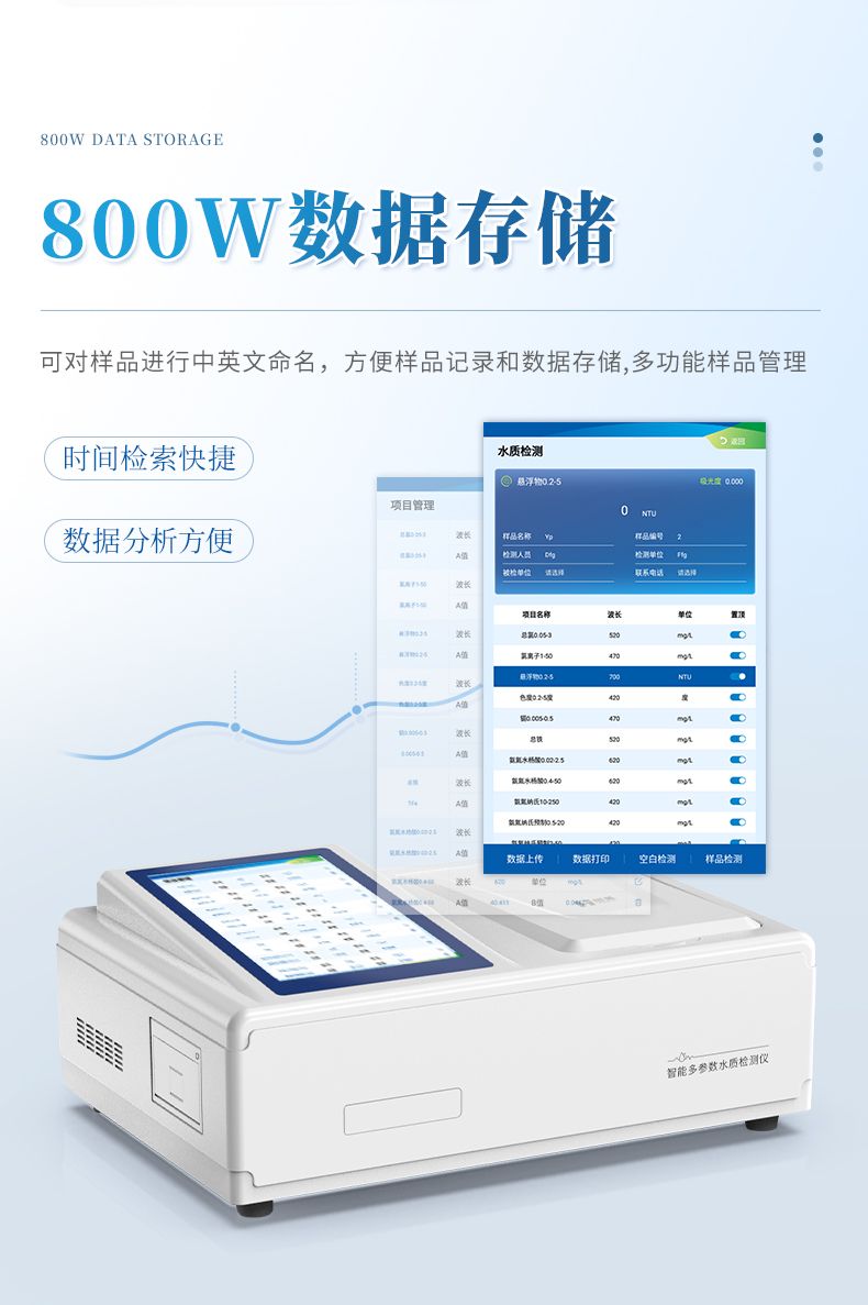 水質四氮檢測儀是參考相關標準研發設計制造,本儀器主要檢測水質氨氮、硝酸鹽氮、亞硝酸鹽氮、總氮濃度指標,兼具智能數據分析功能,圖表、列表顯示數據,分析一目了然;高清晰度彩色液晶觸摸顯示屏,Android智能操作系統,中文顯示界面,中英文鍵盤,人性化操作,使用更簡單。